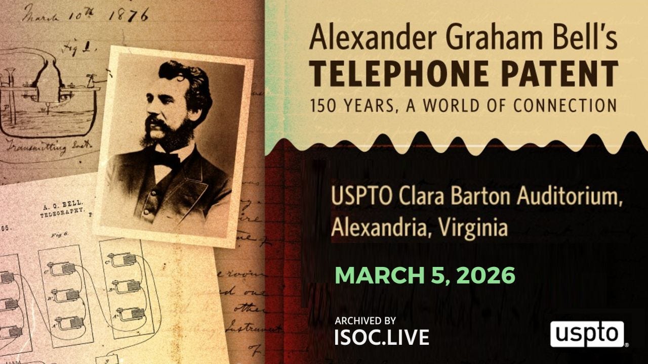 The United States Patent and Trademark Office hosted a commemorative event marking the 150th anniversary of Alexander Graham Bell’s telephone patent (granted March 7, 1876). The program brought together historians, technologists, policy experts, and descendants of the Bell family to reflect on the invention of the telephone, its impact on communications and society, and the continuing role of intellectual property in shaping innovation.